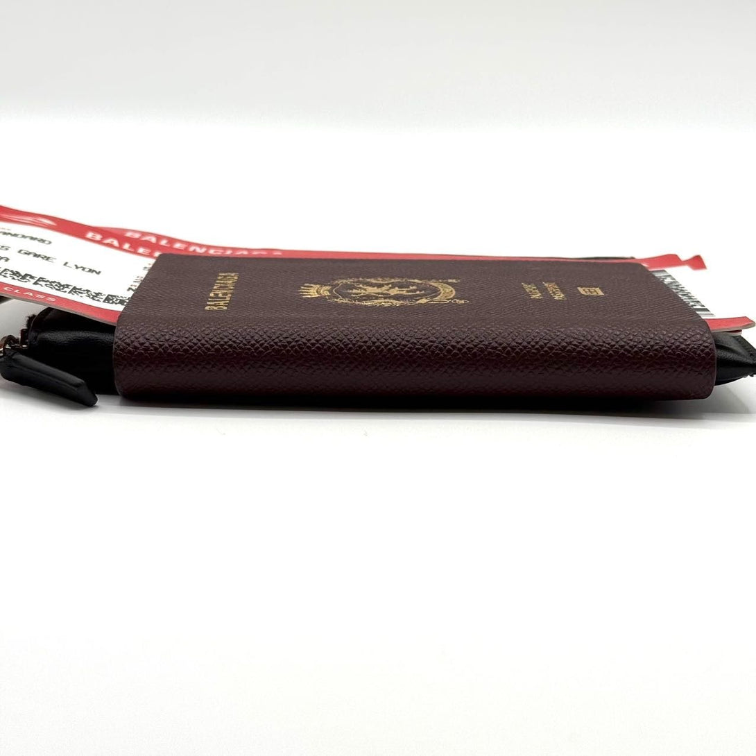 Balenciaga Leather Passport Holder & Travel Wallet In Burgundy & Black