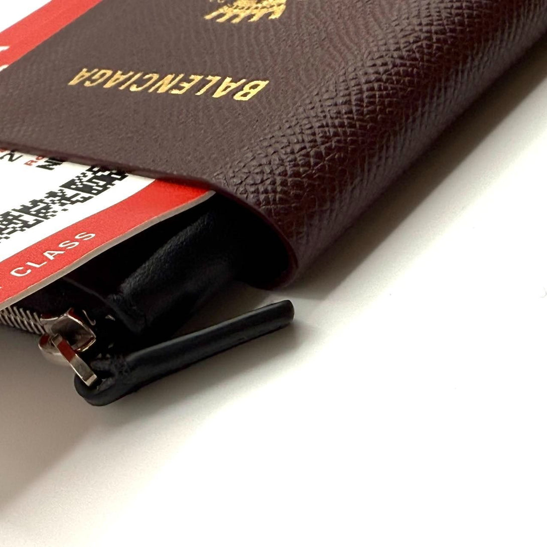 This sleek Balenciaga travel accessory combines elegance and functionality. It features compartments for your passport, travel documents, and essentials, ideal for organized travelers.