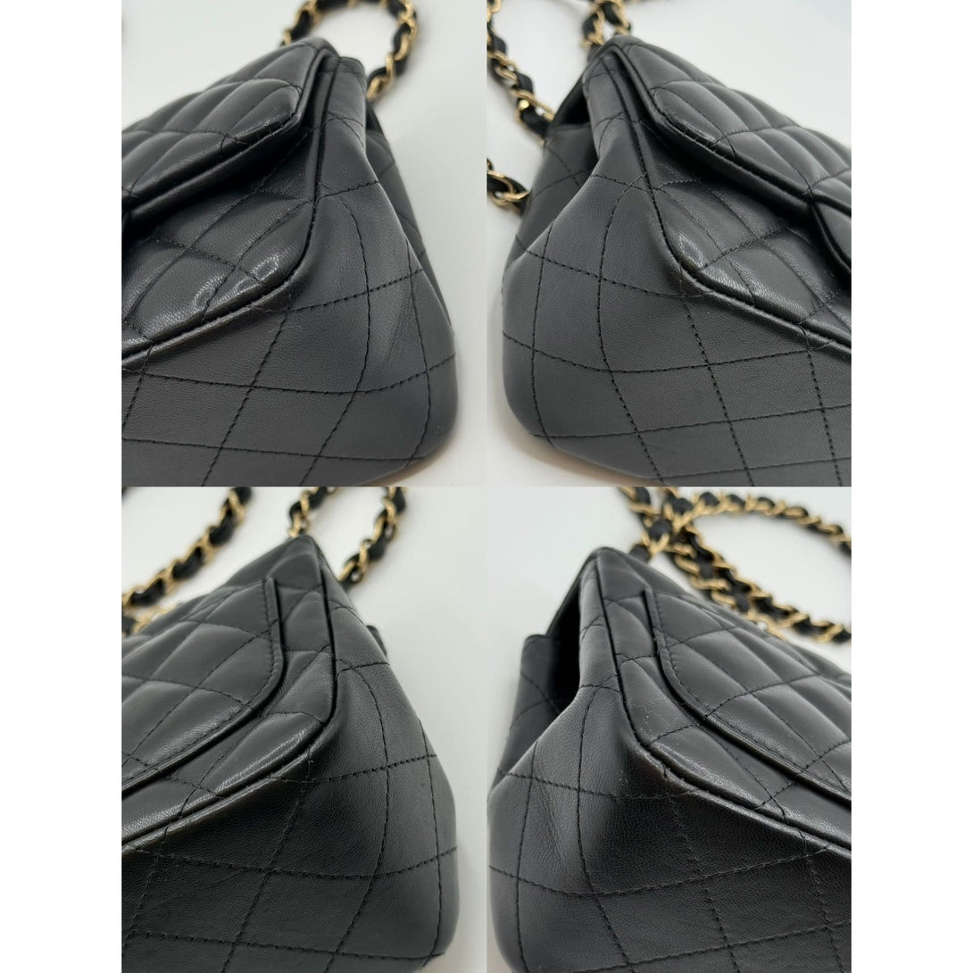 Chanel Black Quilted Lambskin Leather Flap Bag With Gold-Tone Chain Strap & CC Logo Hardware