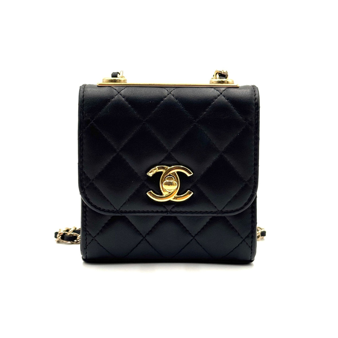 Chanel Black Quilted Lambskin Leather Mini Trendy CC Clutch with Chain