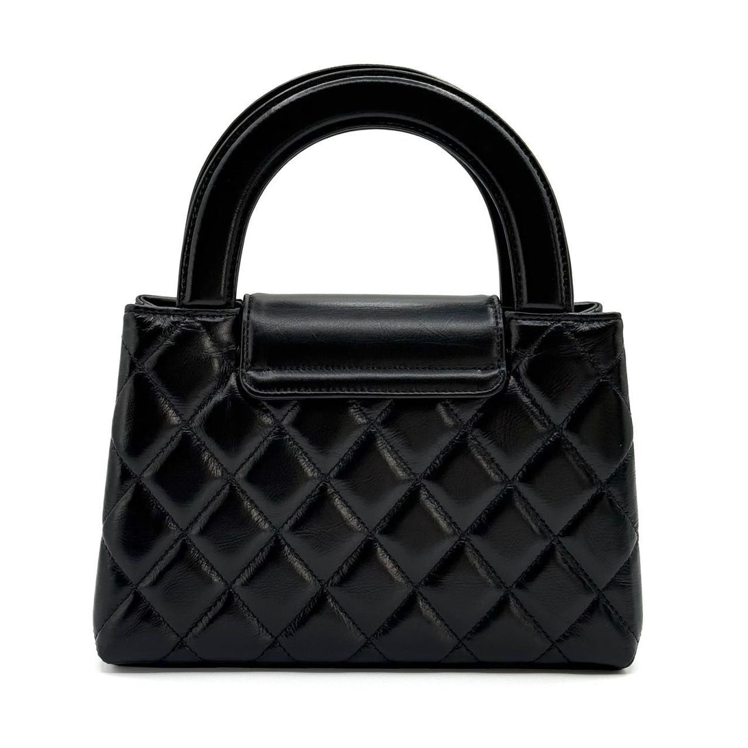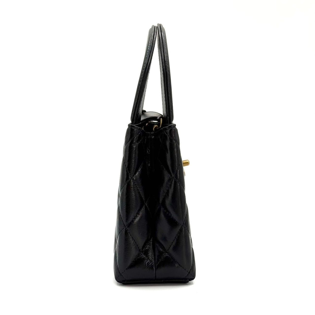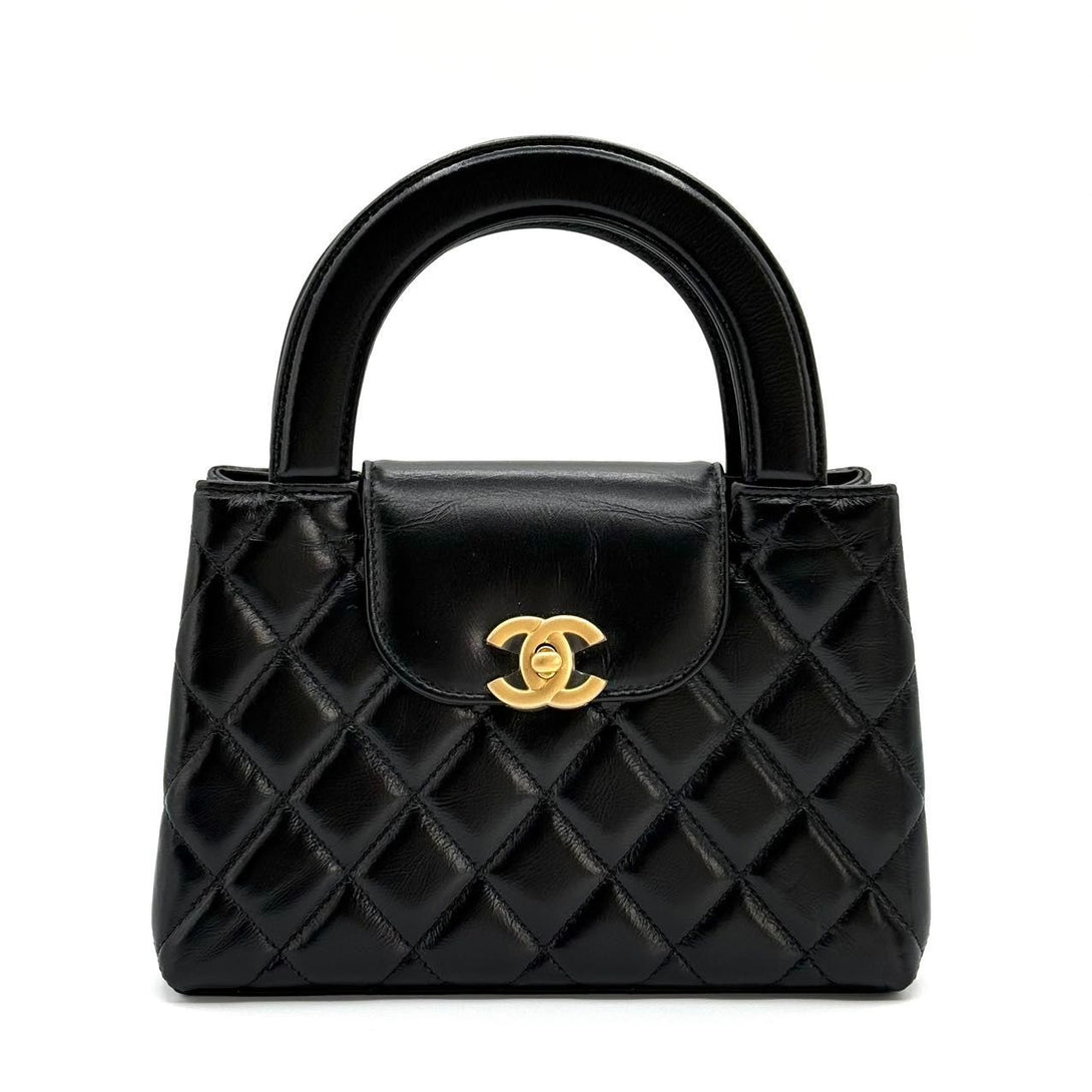 This luxurious Chanel mini tote bag features the iconic quilted lambskin design and gold CC turn lock closure. A timeless statement piece for elegant styling.
