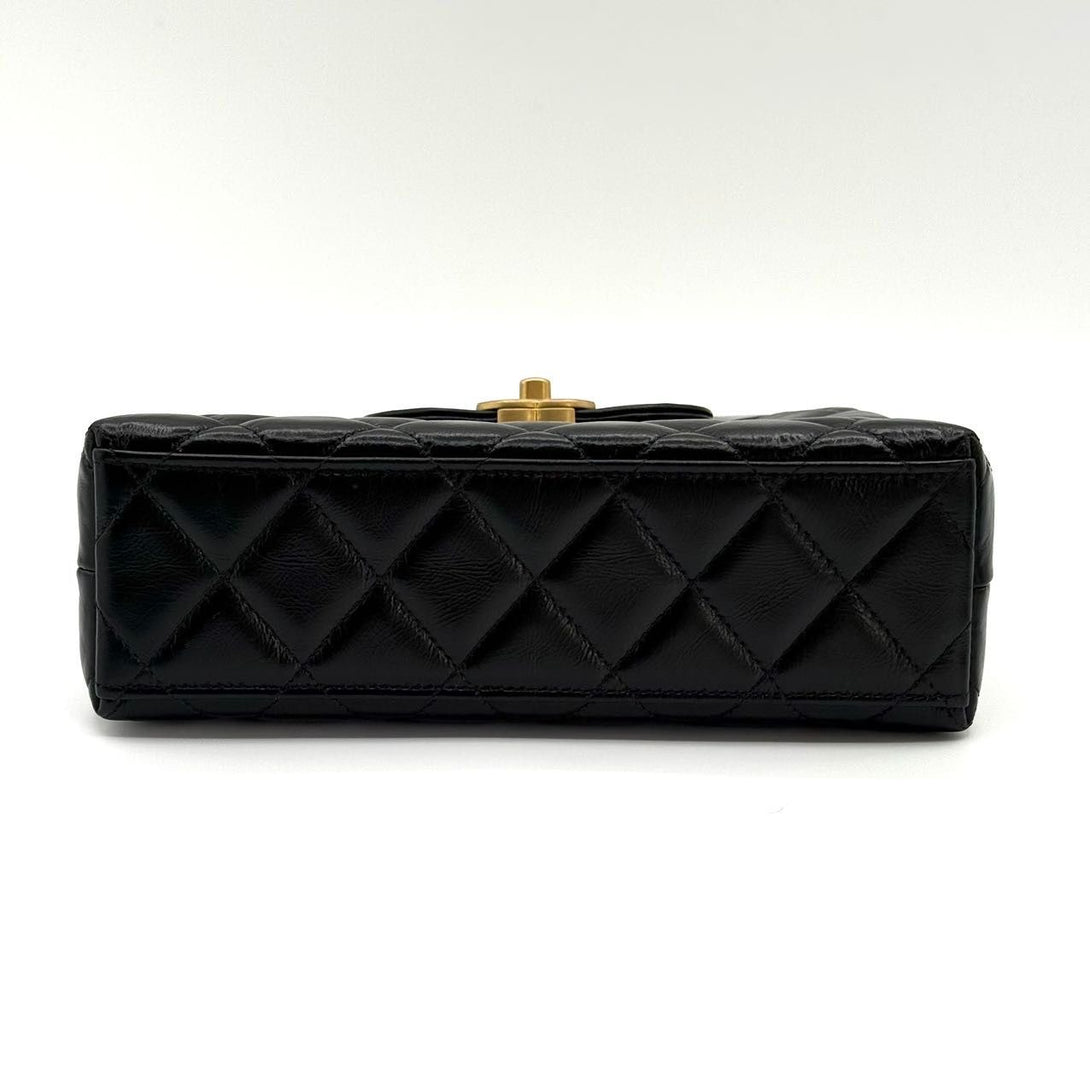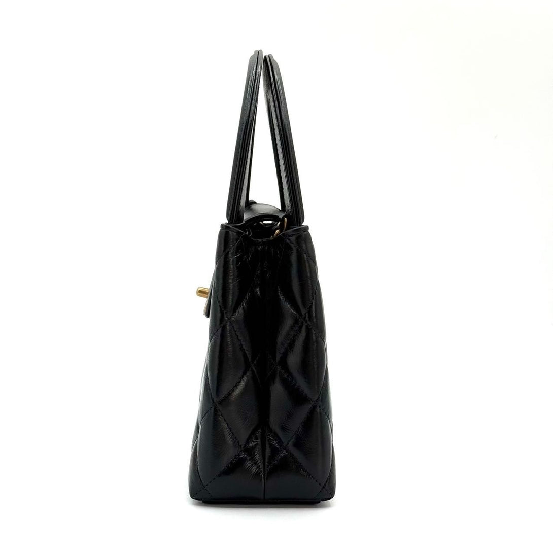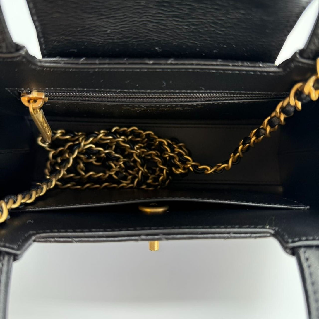 Chanel Black Quilted Lambskin Mini Tote Bag With Gold CC Turn Lock Closure