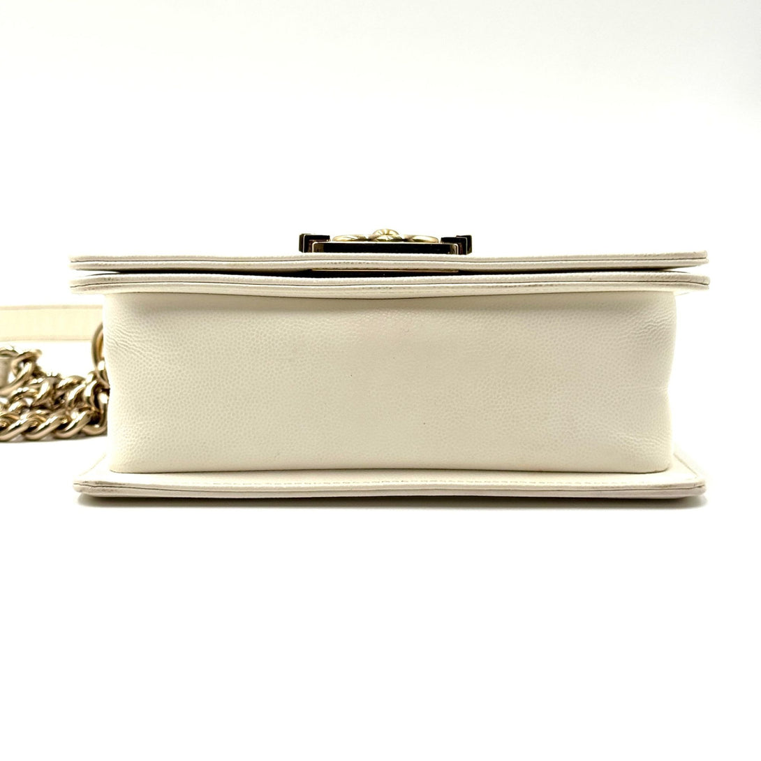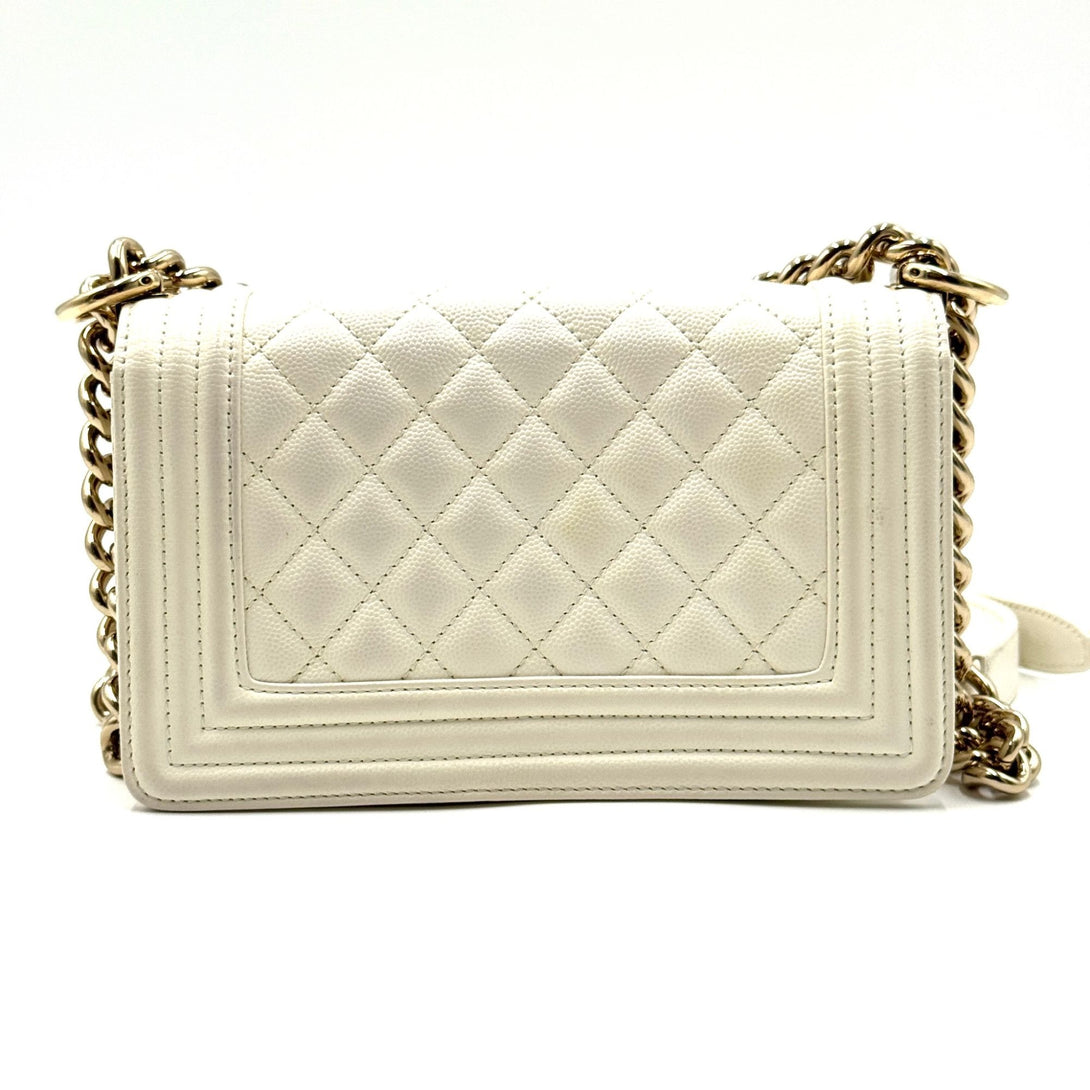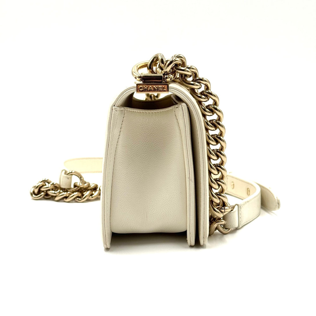 Chanel Quilted White Caviar Boy Bag light gold hardware
