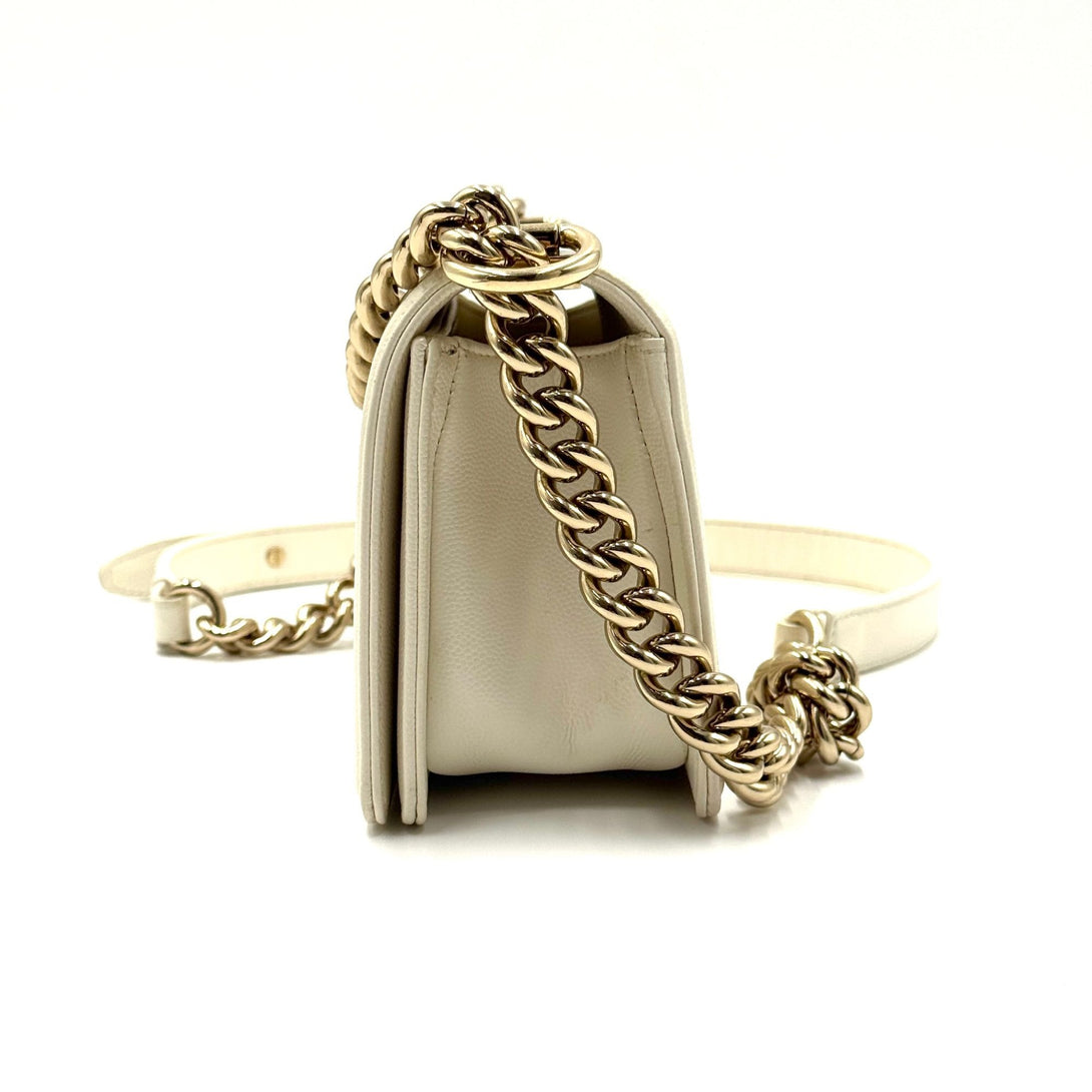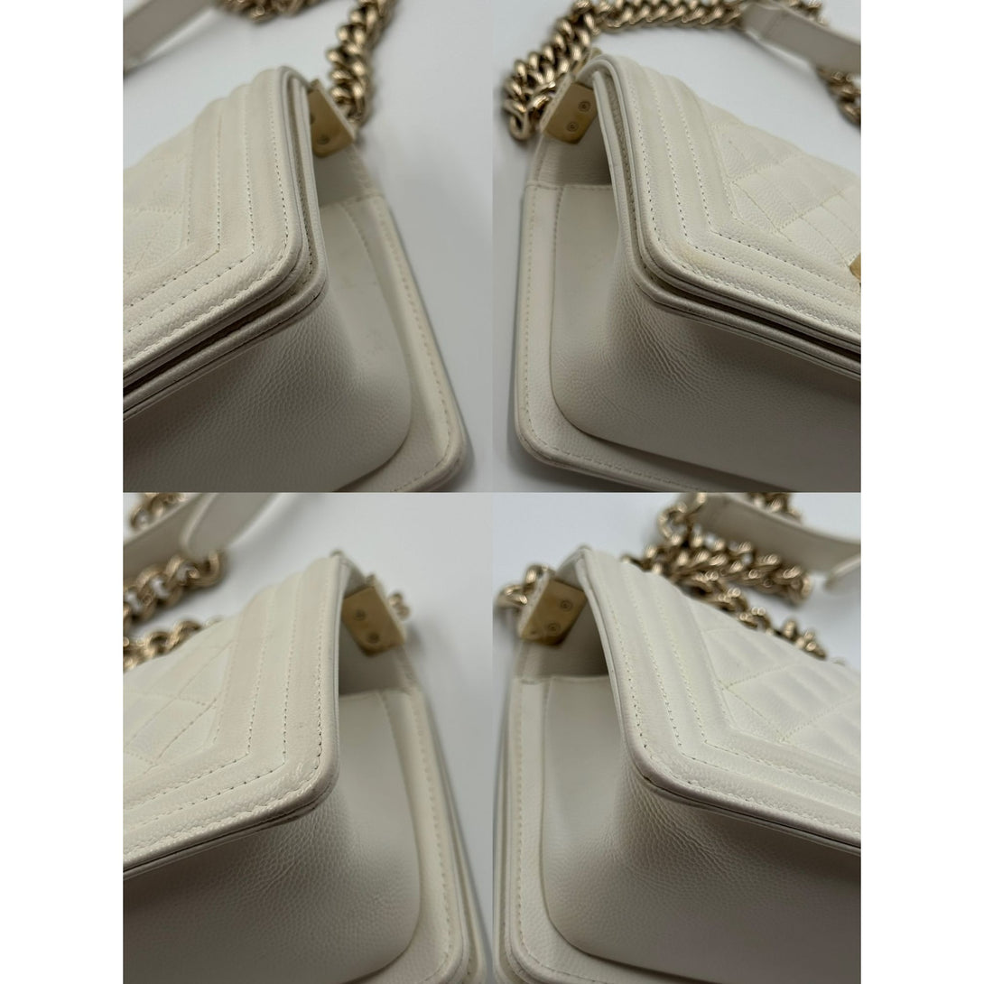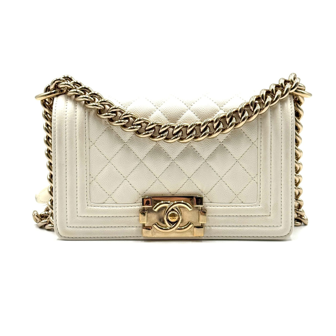 Chanel Quilted White Caviar Boy Bag light gold hardware