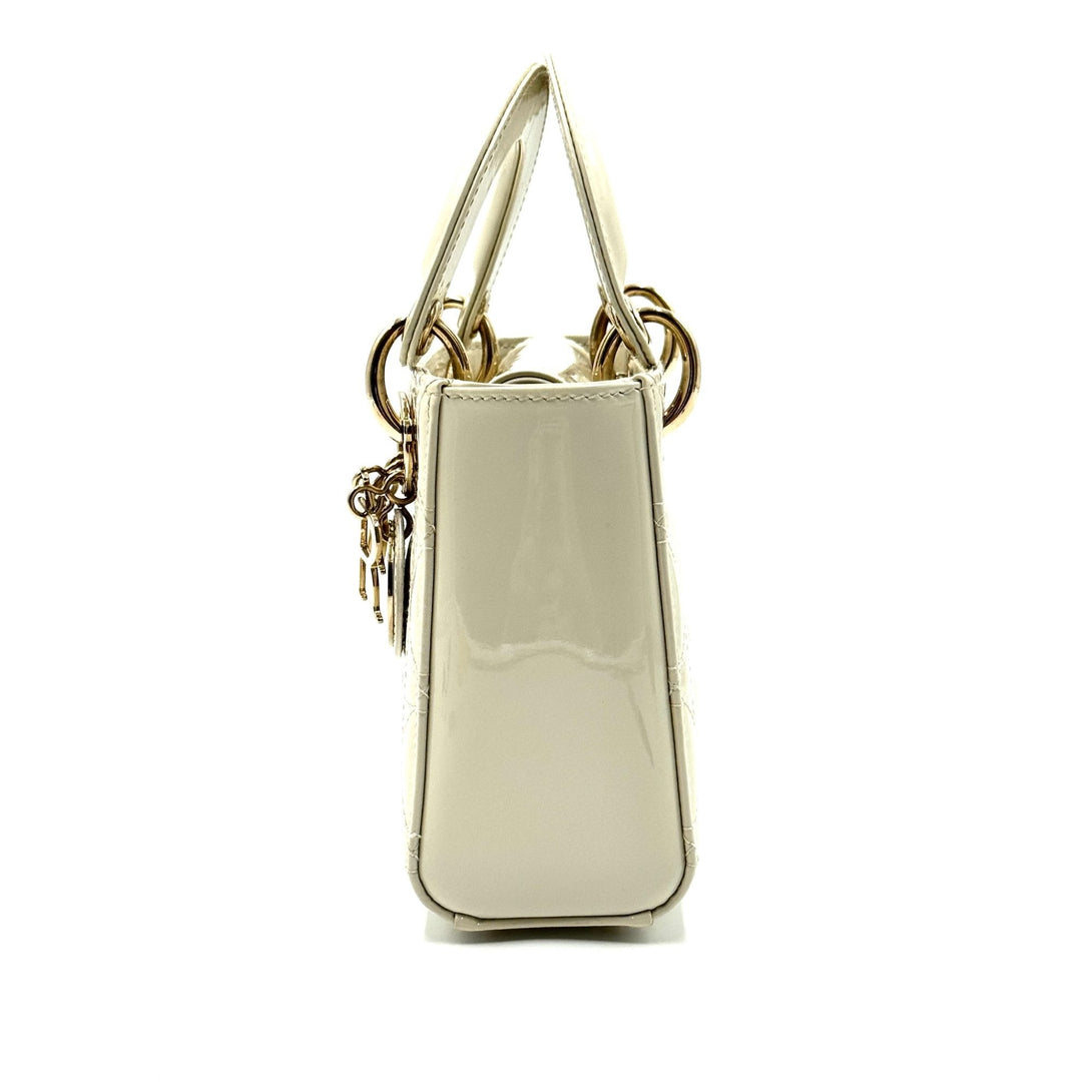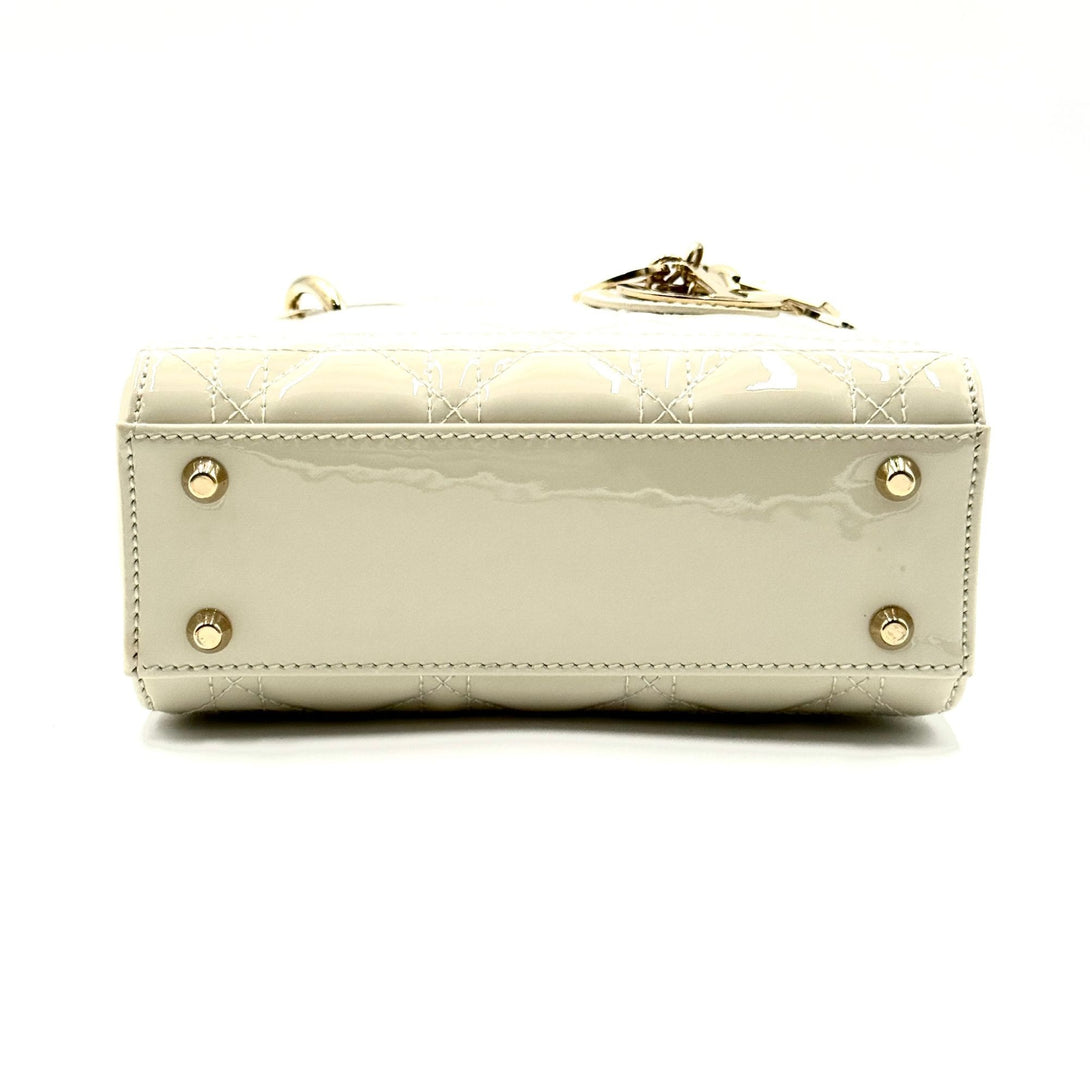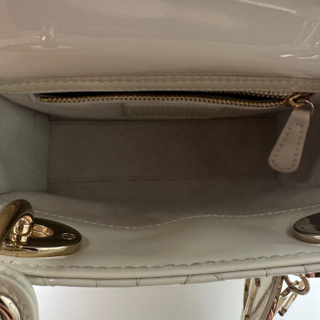 Christian Dior Lady Dior Mini Bag Beige Patent Leather Light Gold Hardware