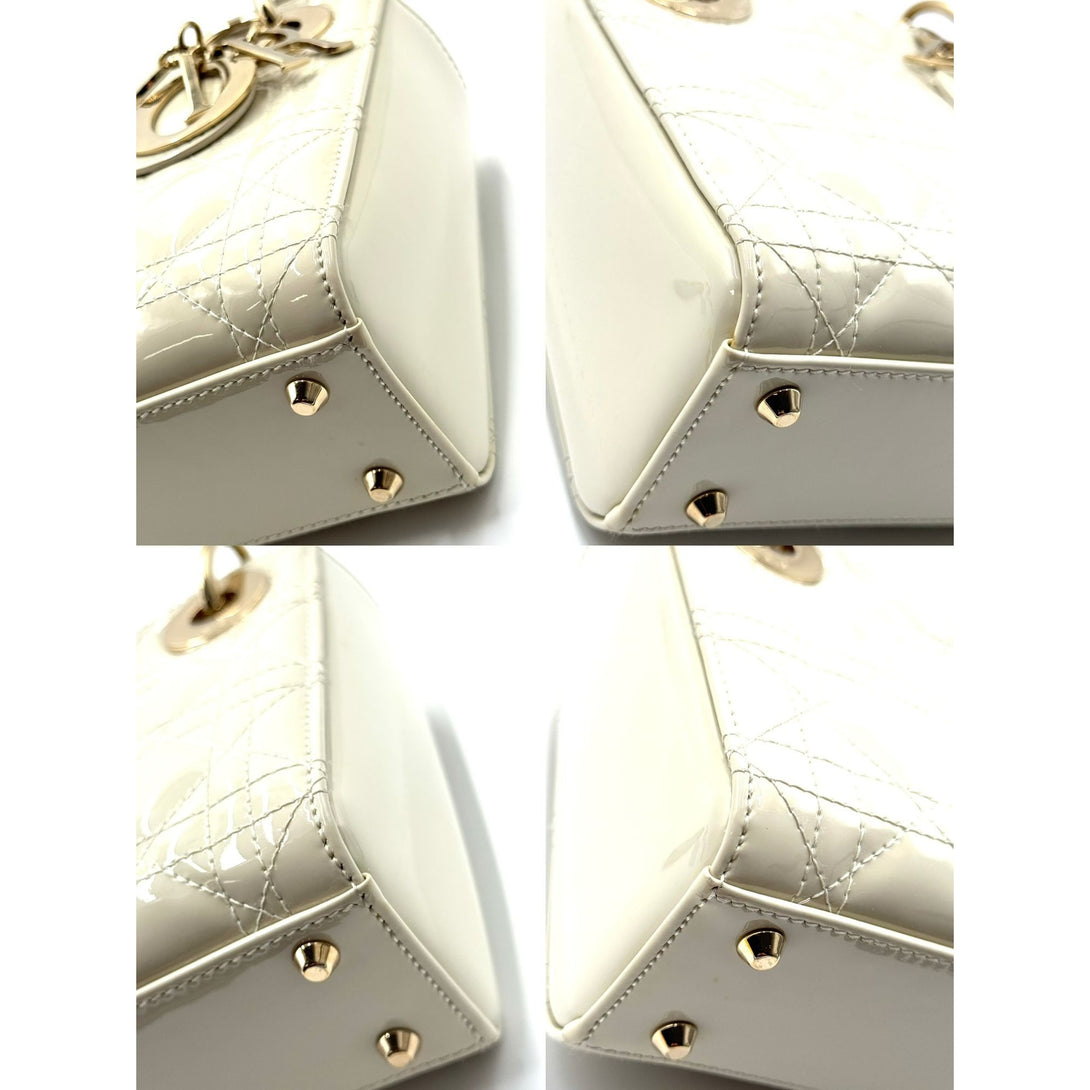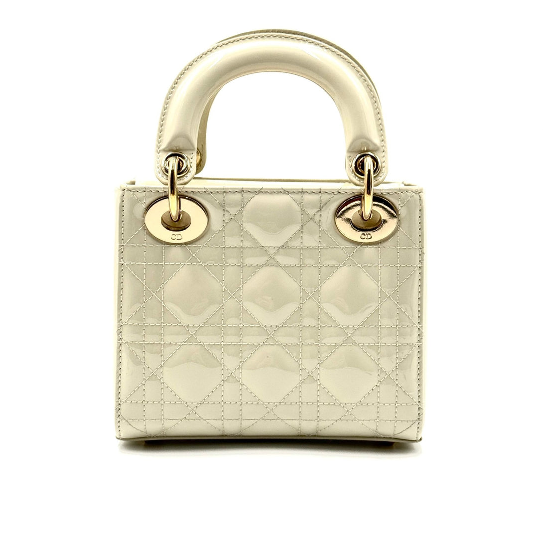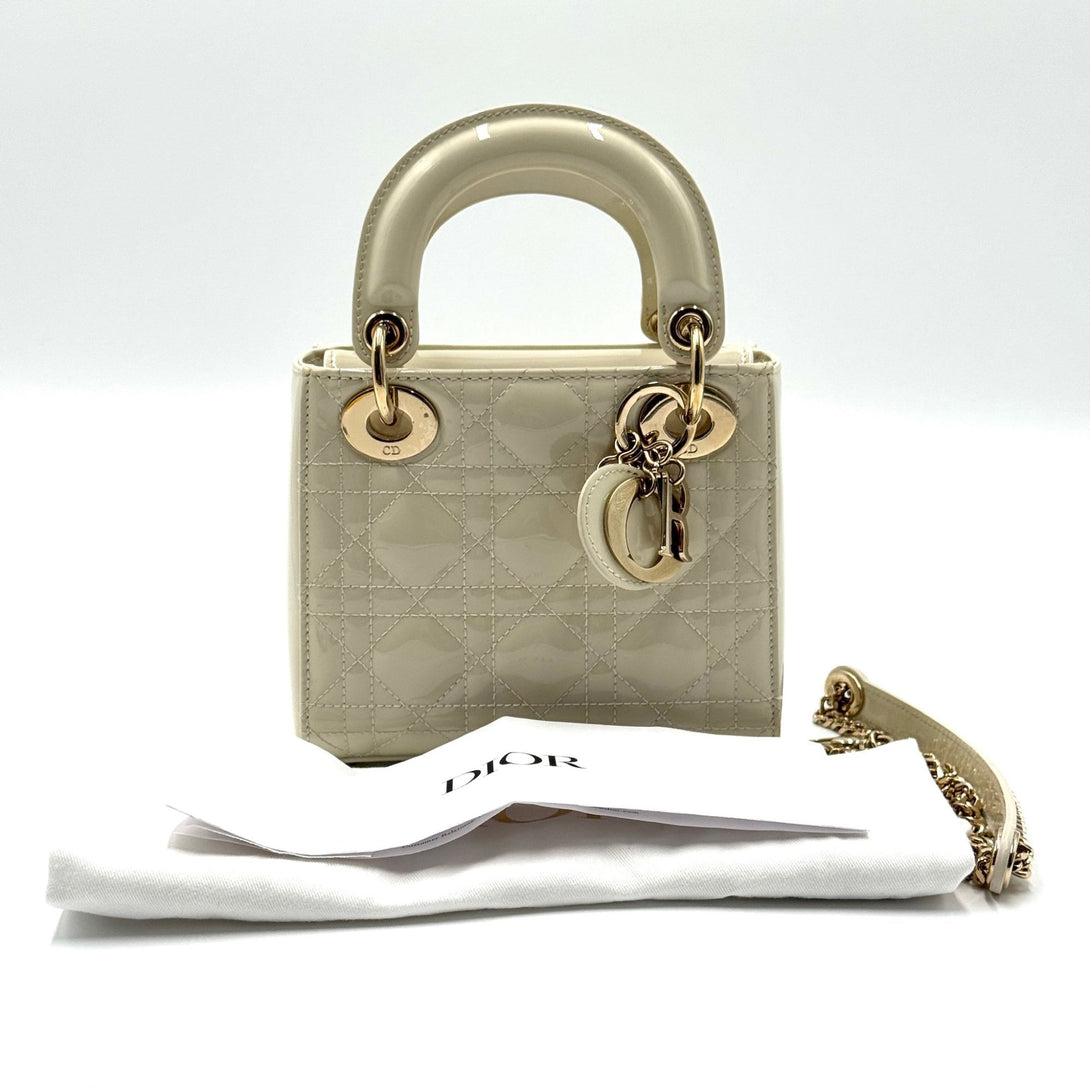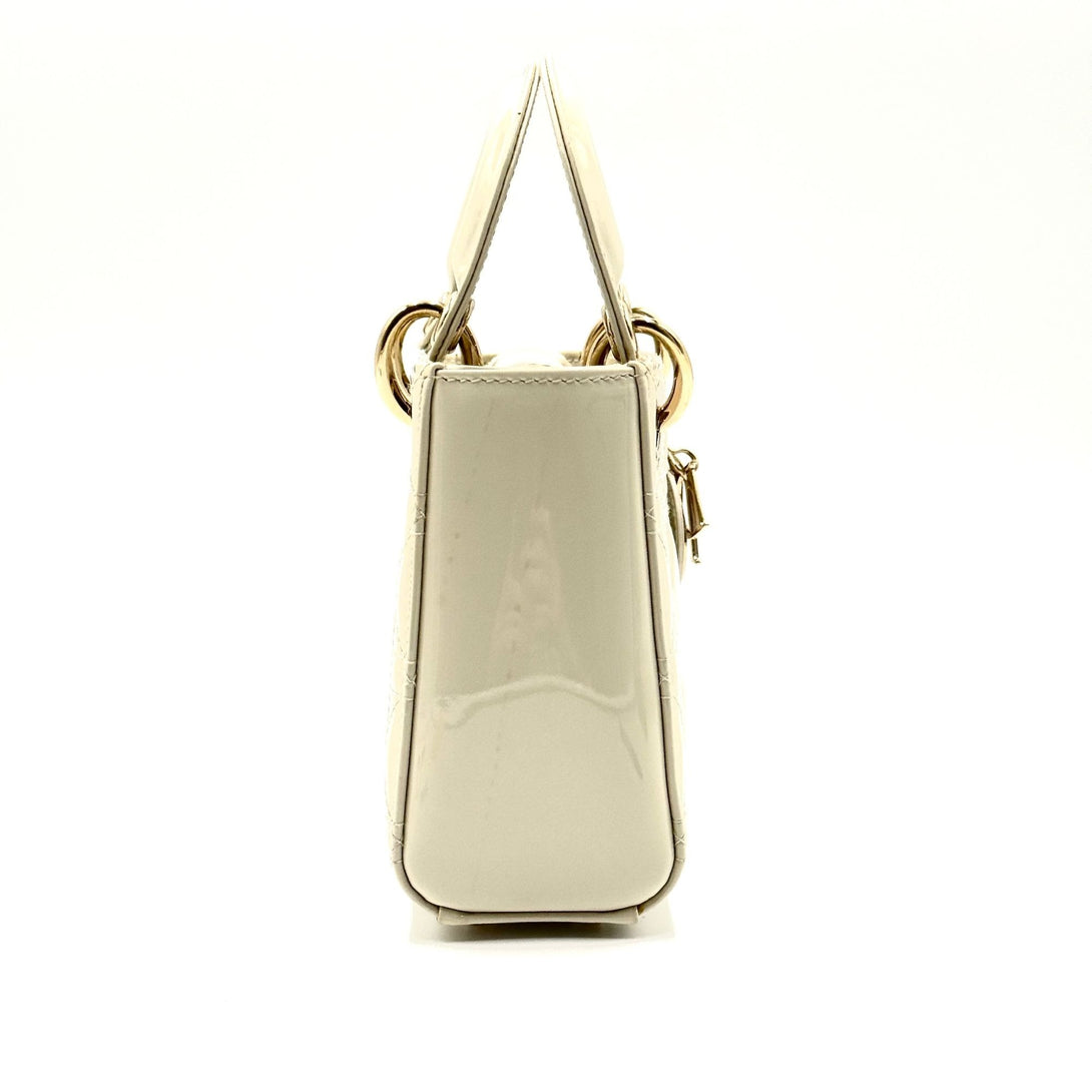 Christian Dior Lady Dior Mini Bag Beige Patent Leather Light Gold Hardware