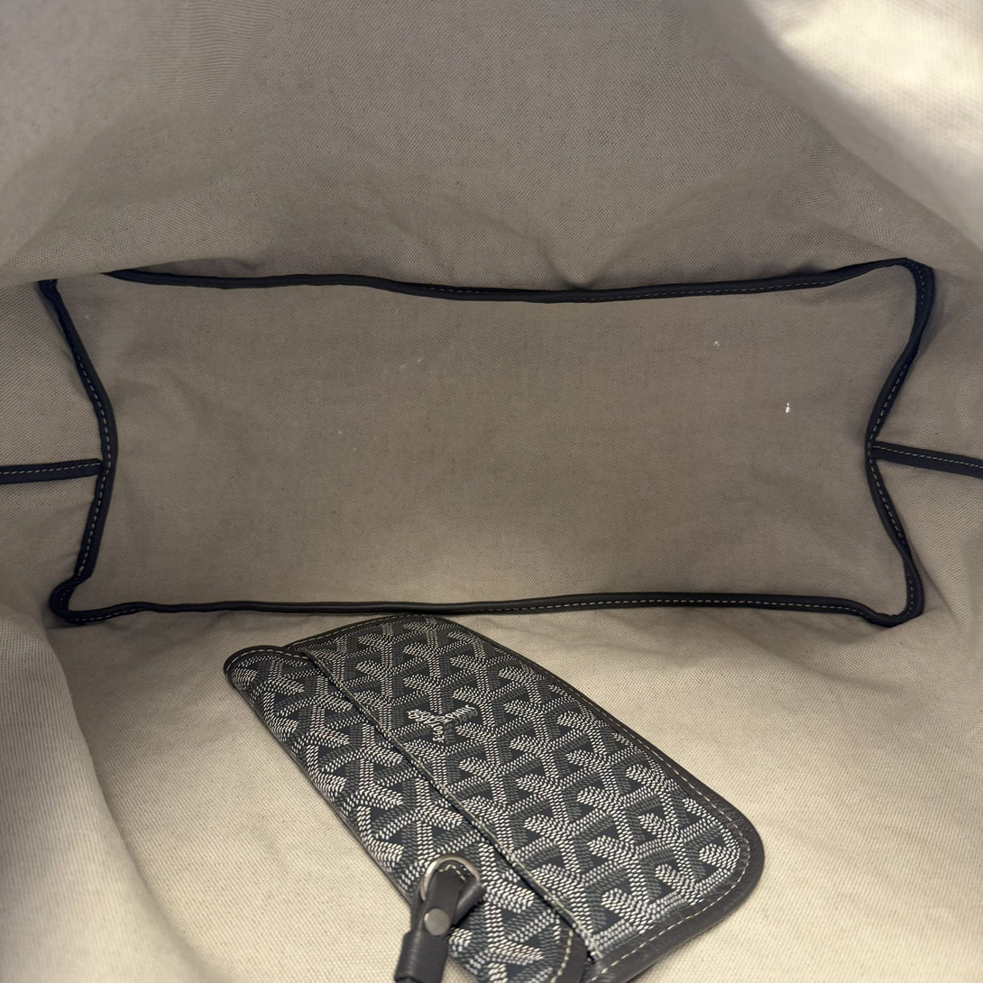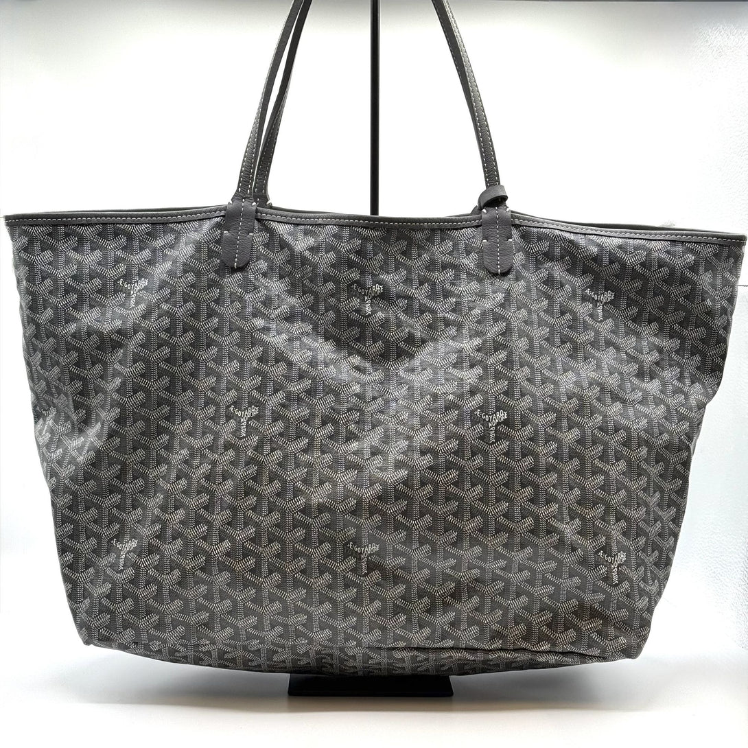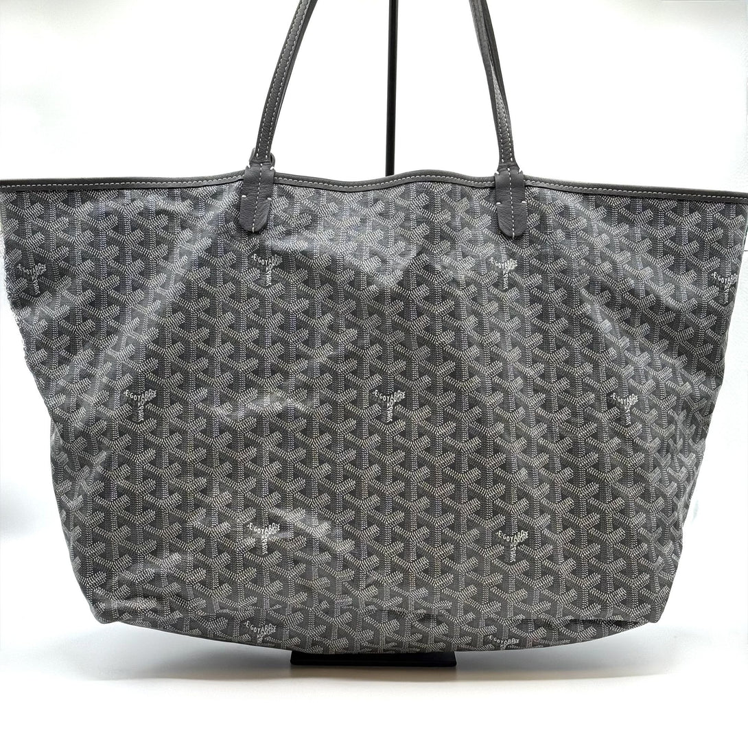 Goyard St. Louis GM Tote Bag Chevron Print Gray Canvas With Dual Leather Handles & Spacious Interior