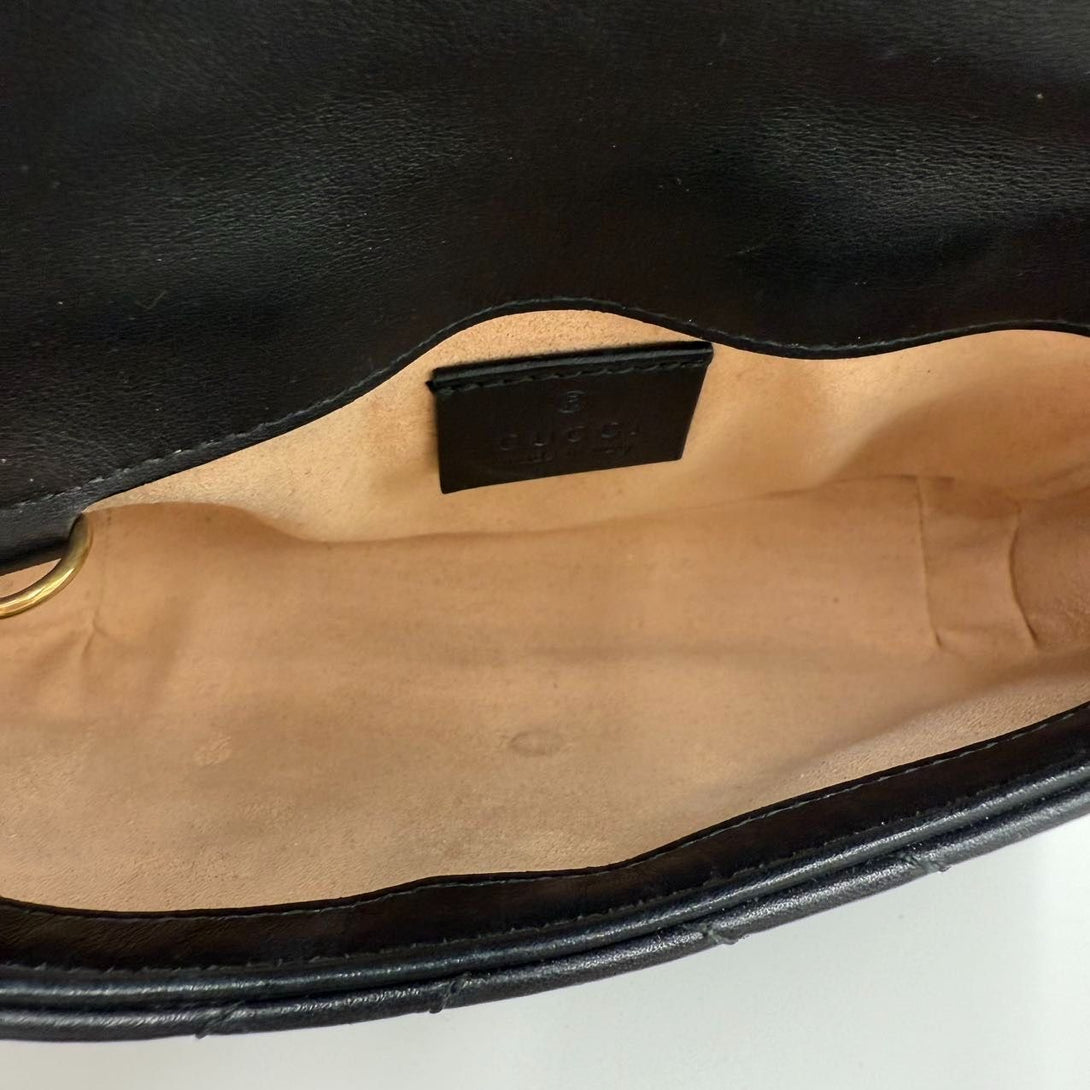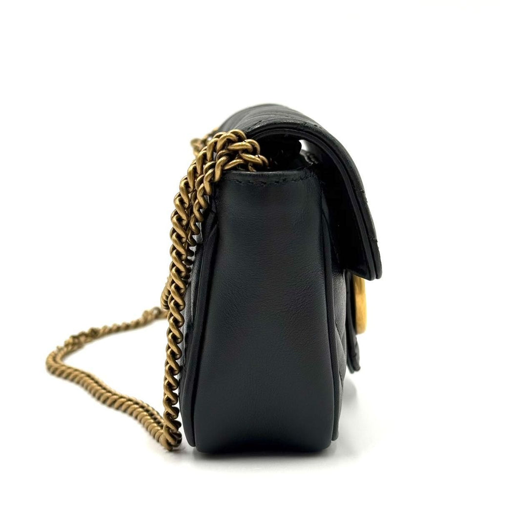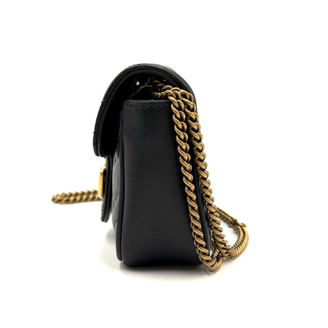 Gucci GG Marmont Mini Matelassé Black Leather Chain Shoulder Bag