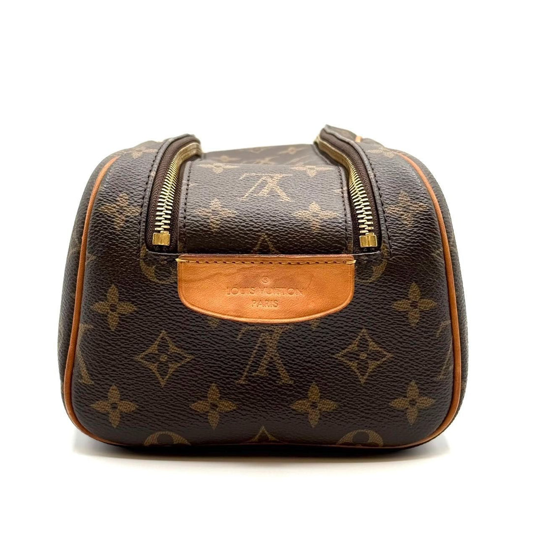 Louis Vuitton Monogram Canvas Cosmetic Pouch Bag With Leather Trim & Dual Zipper Closure