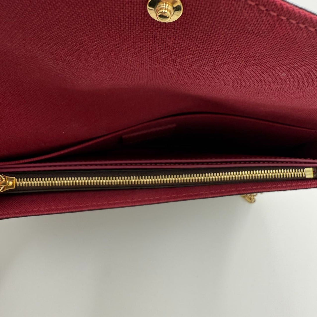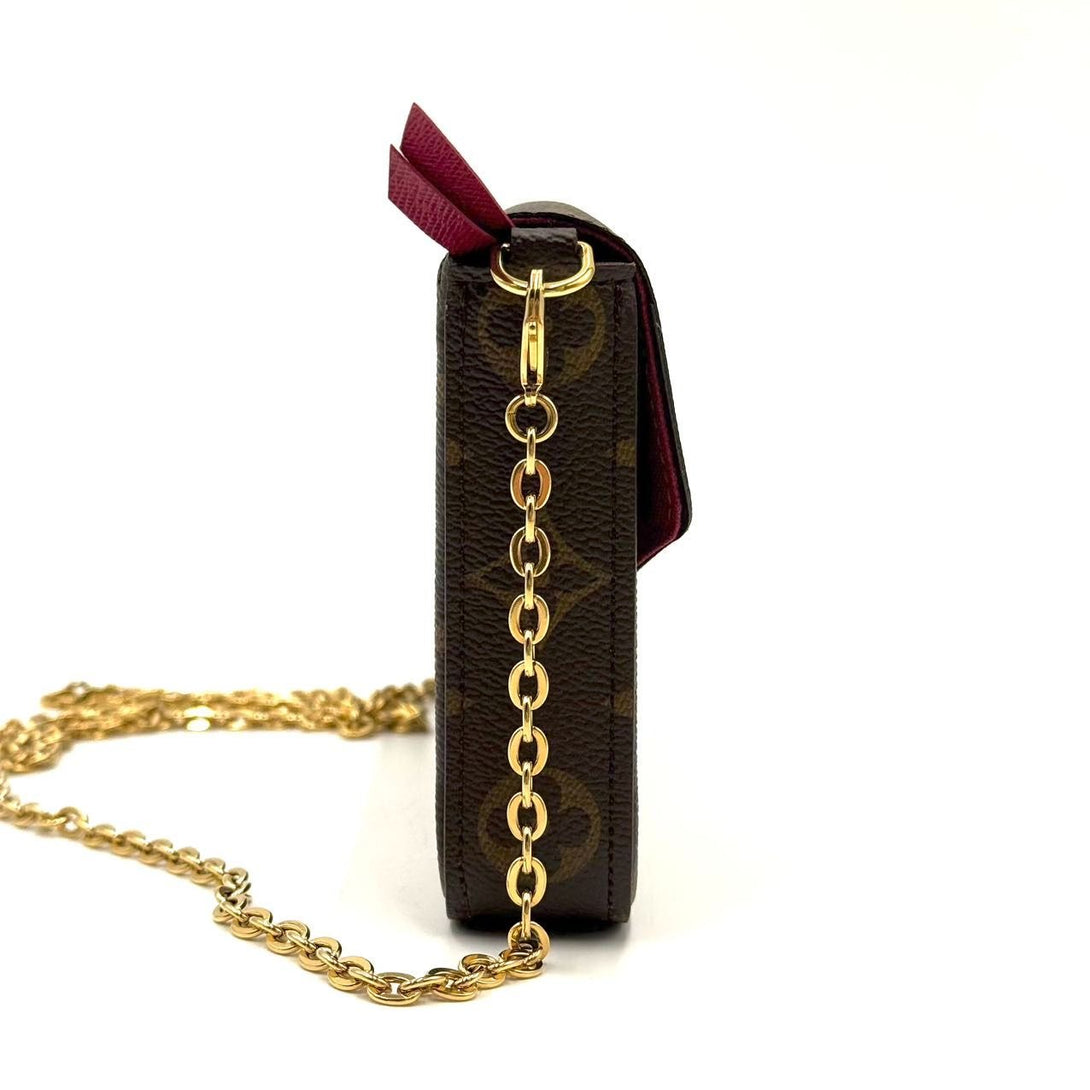 A sophisticated accessory for organizing essentials, this Louis Vuitton Felicie Pochette offers elegance with iconic monogram canvas and a detachable gold chain.