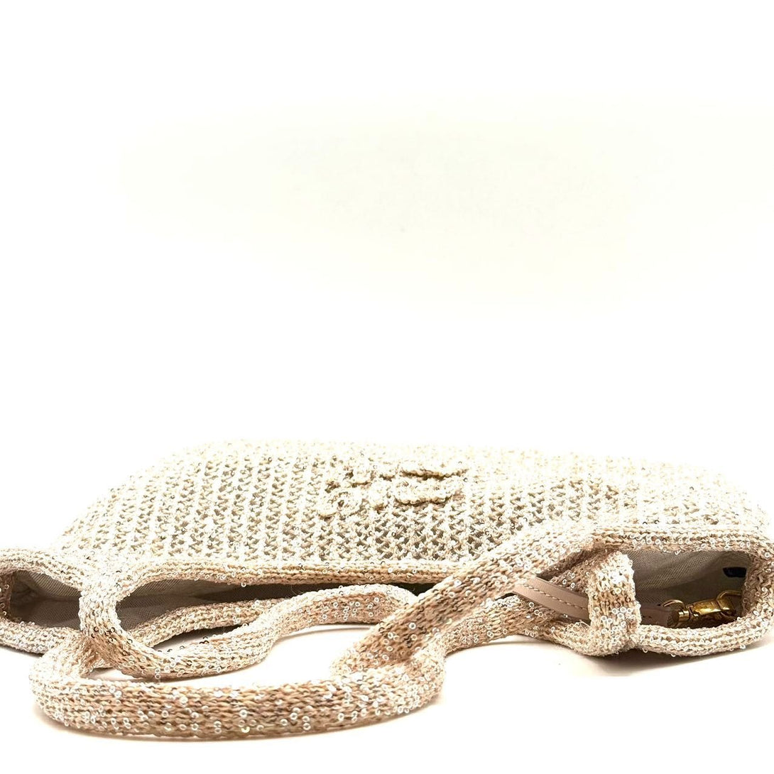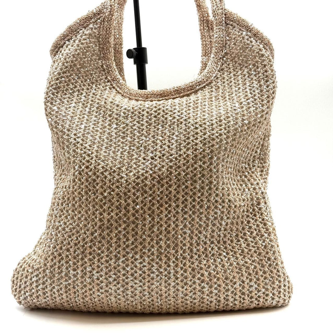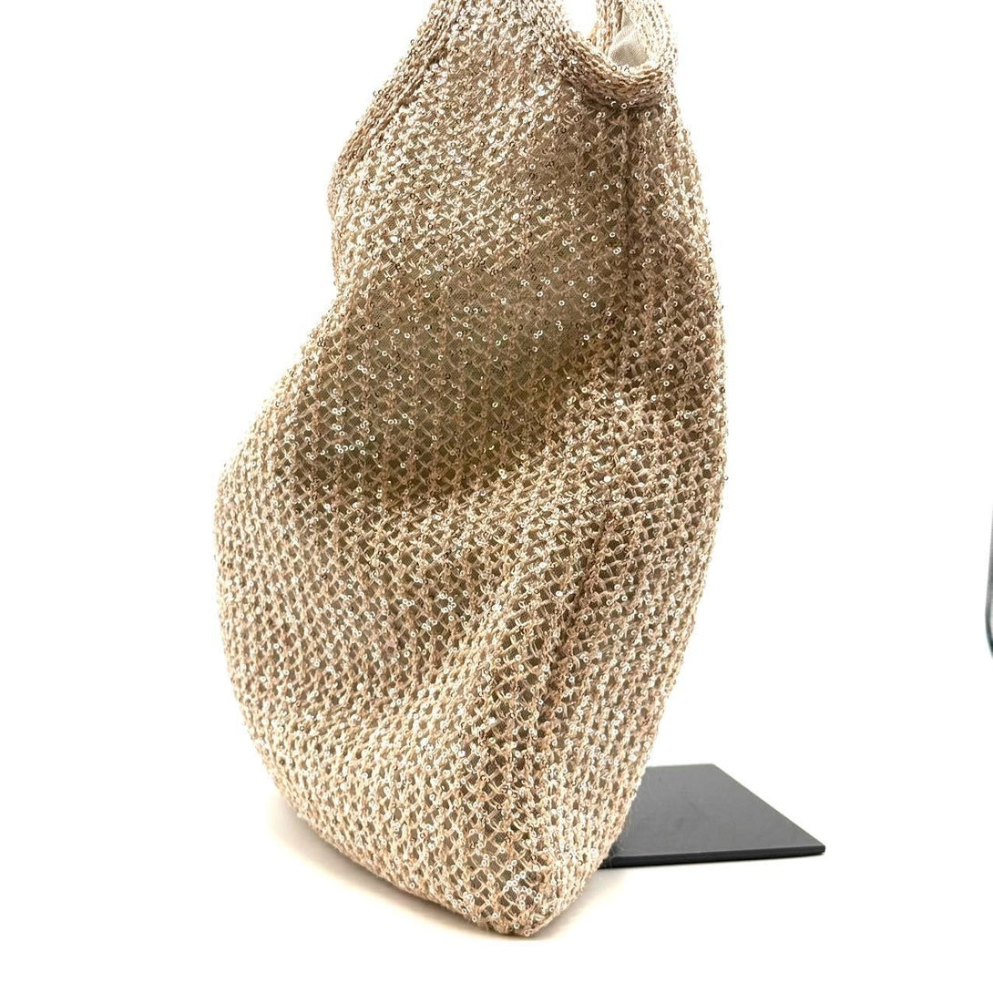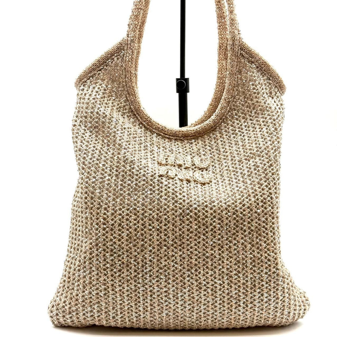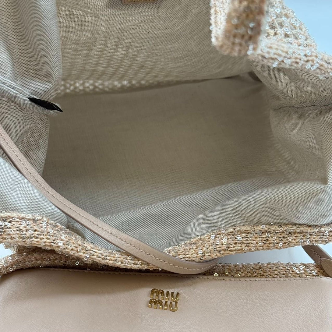 Miu Miu Beige Sequin Mesh Shoulder Tote Bag Womens Designer Accessory Elegant Lightweight Spacious